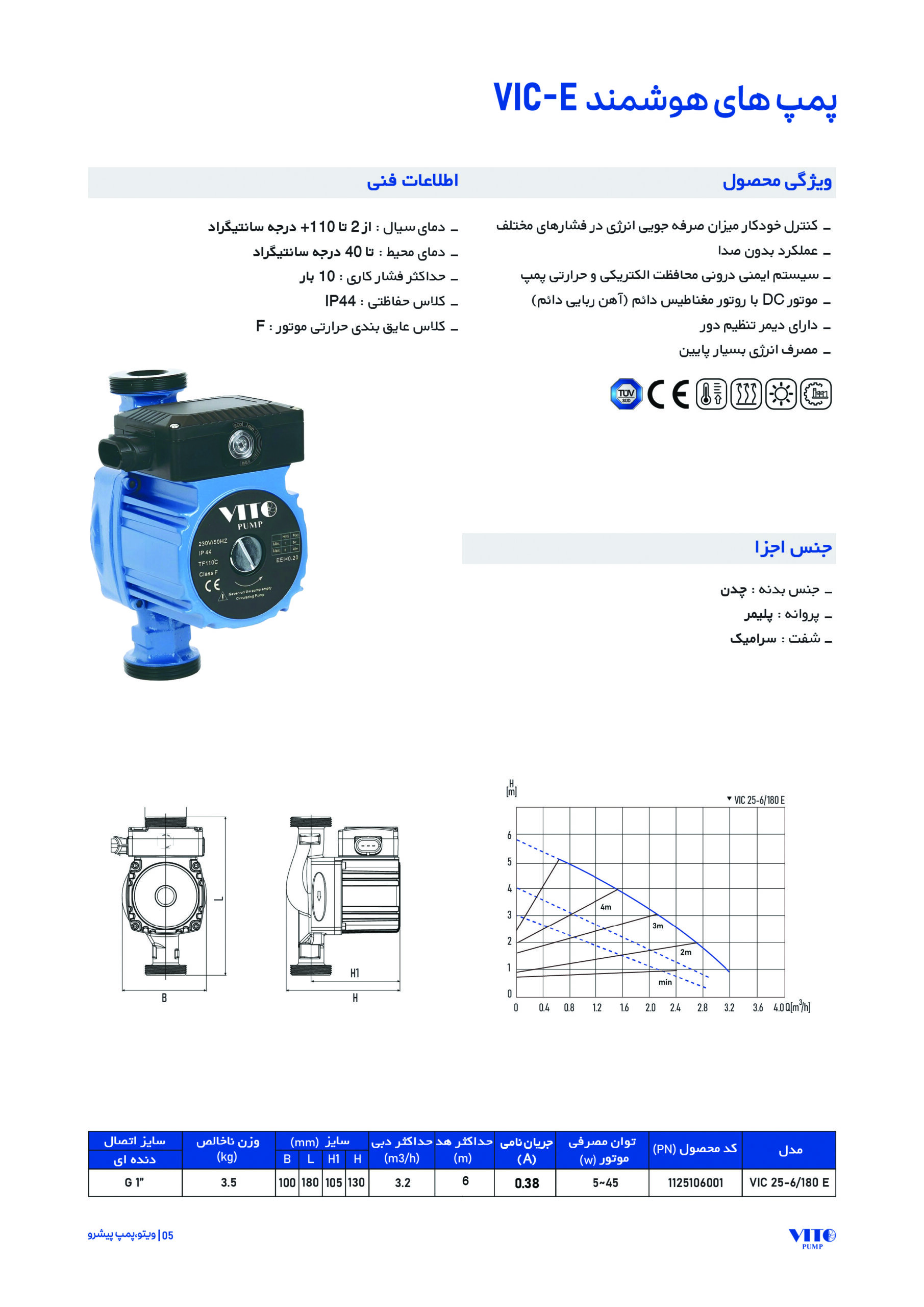 ویژگی های پمپ هوشمند دور متغیر ویتو مدل VIC: